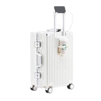 Travel Luggage Set Suitcase Aluminum Frame ABS+PC Hardcase Trolley Bag 28″ – White