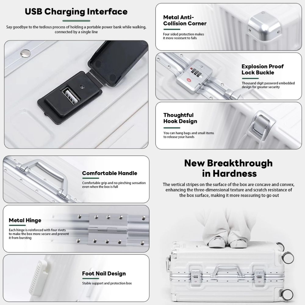 A stylish 24” aluminum-frame hardcase that protects your packing while rolling like it’s on rails, ideal for travel that needs both looks and strength.